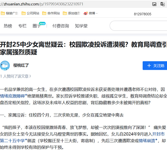 开封25中少女离世疑